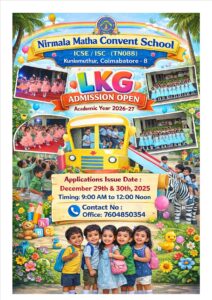 Nirmala Matha Convent School lCSE/ISC is managed by the Sisters of the Adoration of the Blessed Sacrament. This co-educational institution was established in the year 2012. The institution offers ICSE/ISC curriculum of education from Grade I to XII. The institution is located in a top education hub, namely, Coimbatore, Tamilnadu.